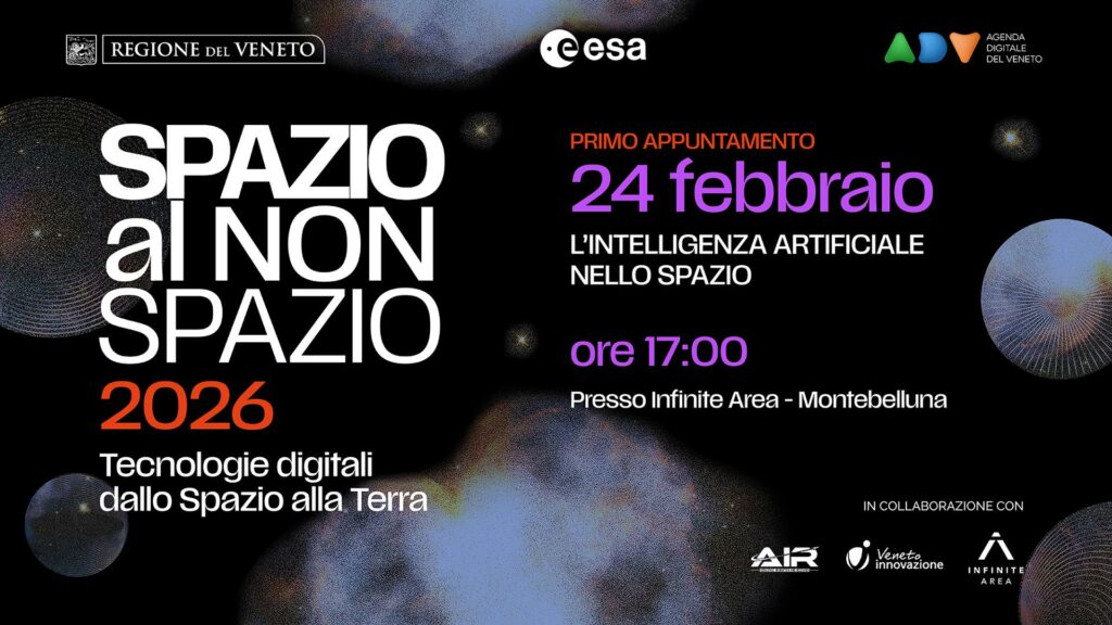 [online 04.02.2026] La Regione del Veneto, con Agenda Digitale del Veneto e Agenzia Spaziale Europea (ESA), organizza il secondo ciclo “Spazio al Non-Spazio” 2026, dedicato all’uso delle tecnologie spaziali nei settori non-spazio.