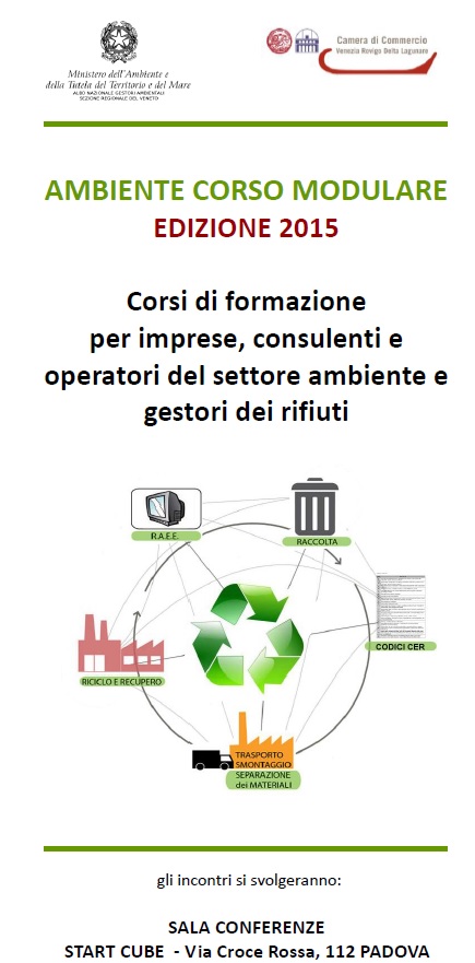 I moduli formativi, in programma dal primo al 18 dicembre 2015 presso la Sala Conferenze della START CUBE a Padova (via Croce Rossa 112), si rivolgono alle imprese, ai responsabili del settore ambiente ed ai responsabili tecnici in materia di gestione dei rifiuti. E’ altresì aperto al personale delle associazioni di categoria e agli studi di consulenza. E’ possibile partecipare anche ad un solo modulo.