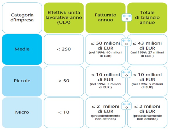 Possono partecipare le imprese appartenenti a qualsiasi settore purché siano Piccole Medie Imprese (PMI) o startup, definite dalle soglie europee riportate nel seguente grafico.