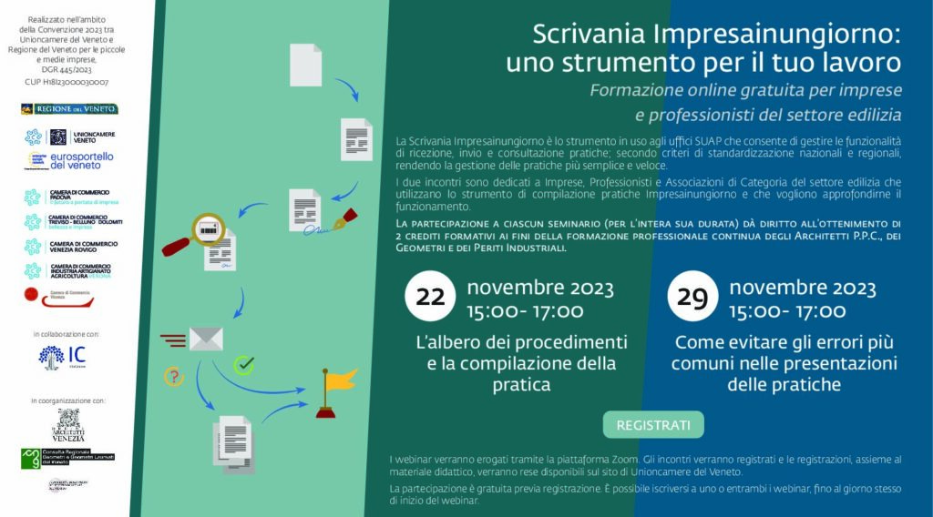 Formazione online gratuita SUAP Impresainungiorno per imprese e professionisti Settore edilizia Mercoledì 22 e 29 novembre dalle 15.00 alle 17.00 Continua a leggere “Formazione online gratuita SUAP Impresainungiorno per imprese e professionisti Settore edilizia”…