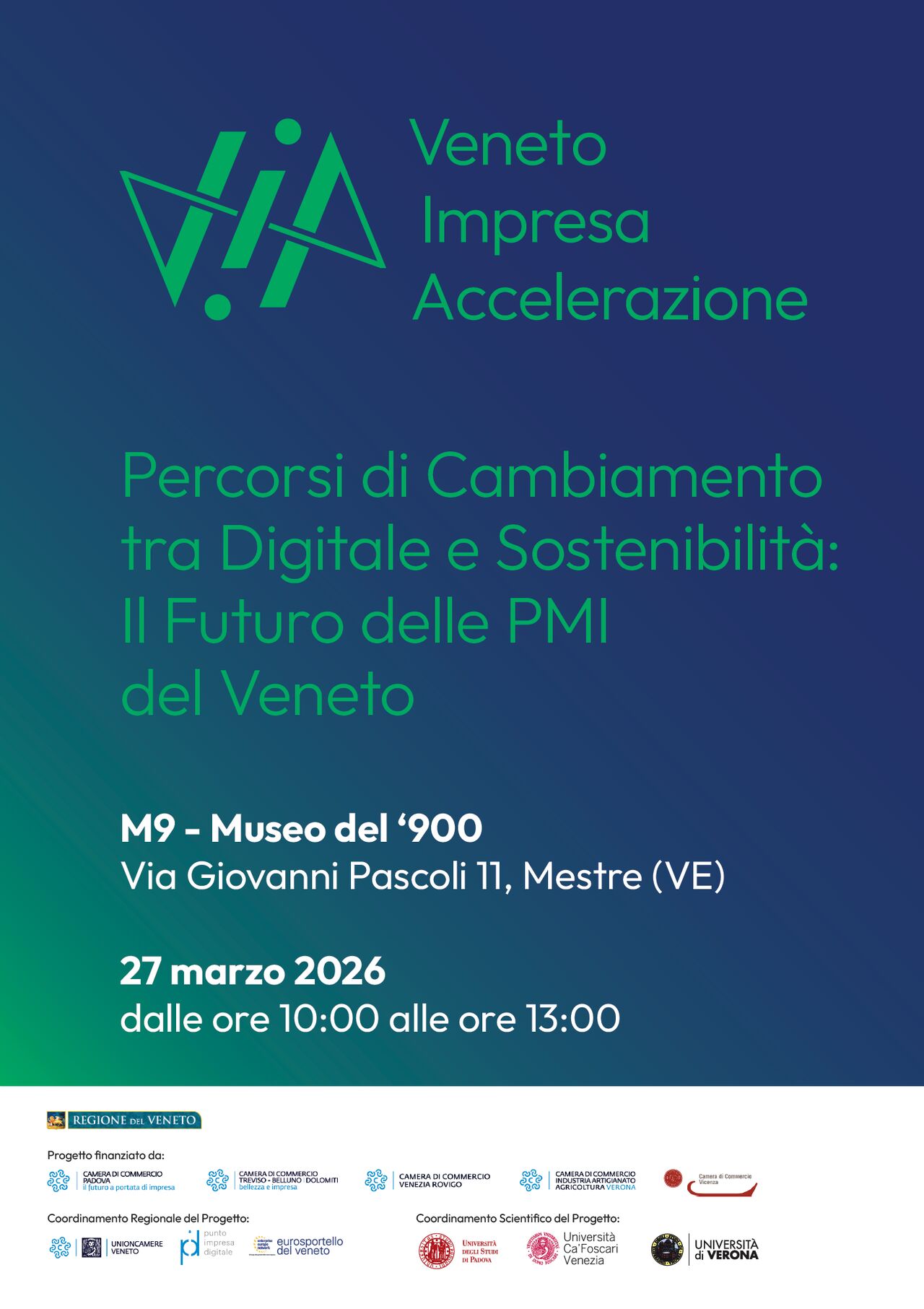 Evento conclusivo venerdì 27 marzo ore 10.00-13.00 presso M9 – Mestre Continua a leggere “Progetto PID Veneto. Percorsi di cambiamento tra Digitale e Sostenibilità: il futuro delle PMI del Veneto”…